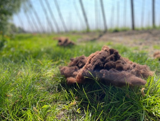 De wol van onze zwartblesschapen krijgt bij ons een tweede leven. Reeën durven namelijk wel eens een hapje te nemen van onze jonge hopplanten, en dat willen we natuurlijk vermijden. Daarom verspreiden we de wol rondom de hopvelden: de geur houdt dit nieuwsgierige grootwild op afstand. Zo beschermen we onze hop op een natuurlijke manier én geven we de wol een waardevolle nieuwe bestemming.